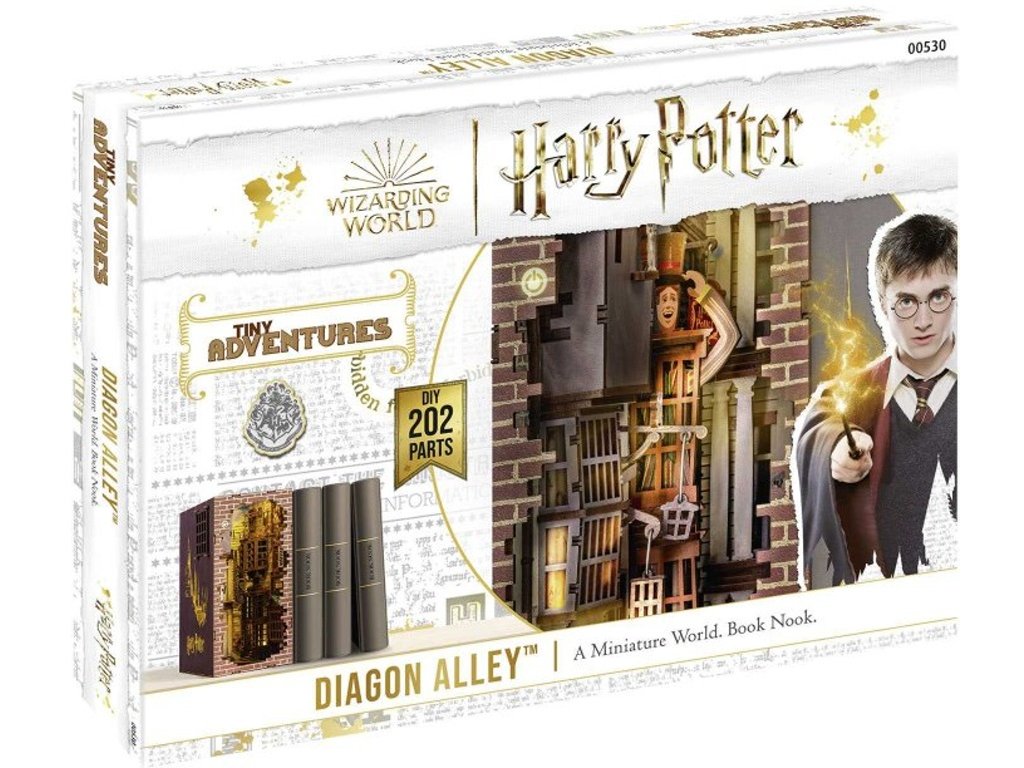 Zápaste s fascinující atmosférou kouzelnického světa Harryho Pottera přímo do své knihovny s knižním koutem "Tiny Adventures Diagon Alley". Tato modelová sada v měřítku 1:24 je mistrovsky navrženým miniaturním světem, který potěší jako ozdoba mezi vašimi knihami nebo jako sběratelský kousek sám o sobě. Ideální pro fanoušky, modeláře a milovníky miniatur!
