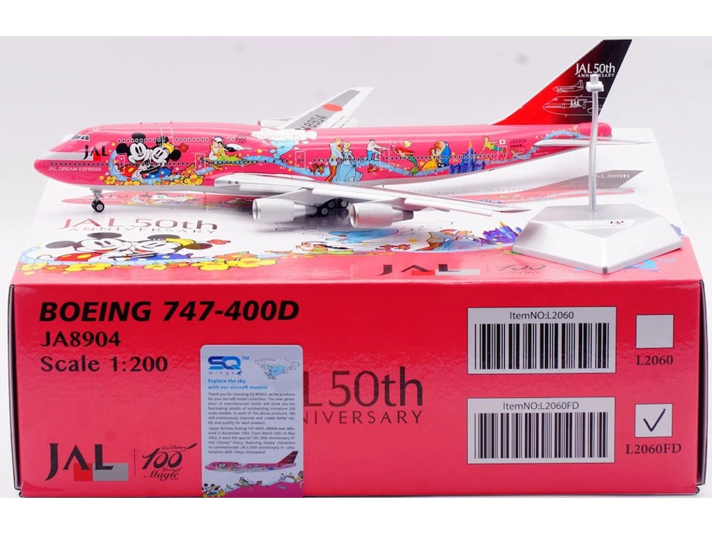 SQ Wings - Boeing B747-400D, JAL Japan Airlines, Walt Disney, 50-jähriges Jubiläum, rosa, JA8904, Japan., 1/200