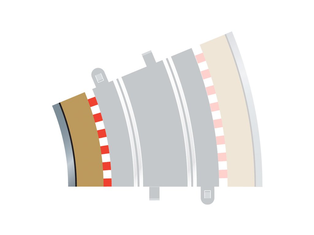 Vnitřní okraj zatáčky pro autodráhu Scalextric - rozšíření trati. Velikost: R3, 4x 22,5°.