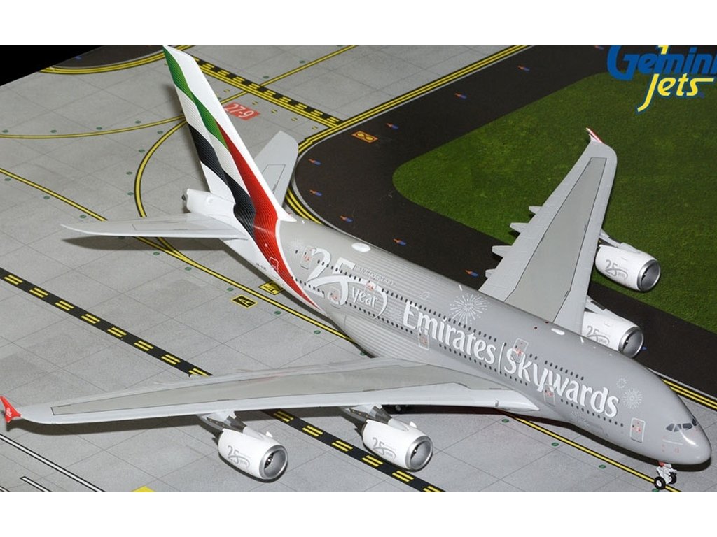 The color scheme falls under the Emirates airline "Emirates Skywards 25th Anniversary", A6-EUE, United Arab Emirates
