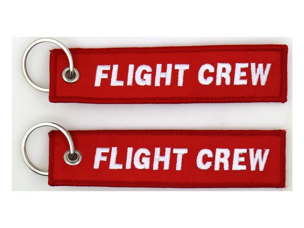 MegaKey - přívěsek "FLIGHT CREW" - oboustranný, vyšívaný, červená, 13 x 3 cm