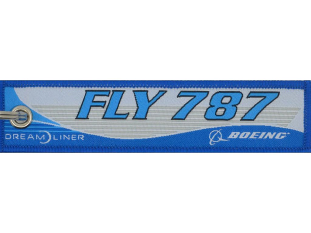 MegaKey - přívěsek "FLY 747" - oboustranný, tkaný, modrý, 13 x 3 cm