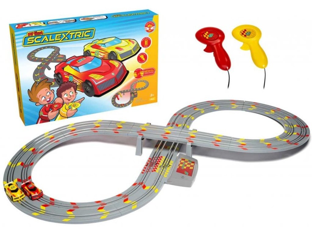 Skvělý úvod do světa závodů Scalextric pro děti od tří let. Snadno sestavitelná autodráha ve tvaru osmičky.