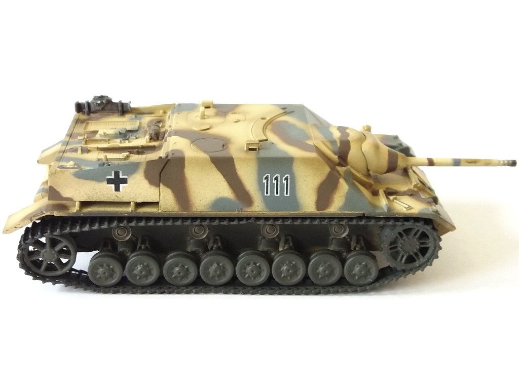 The Jagdpanzer IV (Sd.Kfz.162) was an effective German tank destroyer produced between 1944 and 1945. Powered by a Maybach HL 120 TRM engine, it reached speeds of up to 42 km/h and was armed with a powerful 7.5 cm Pak 39 cannon and an MG 34 or MG machine gun 42. Its low build made it easier to camouflage and less likely to be hit by enemy weapons. It was used on all fronts and produced in several versions, such as the Jagdpanzer IV/70 (A) or the Jagdpanzer IV/70 (V). In total, about 1,850 were produced, and several examples are still preserved in museums around the world.