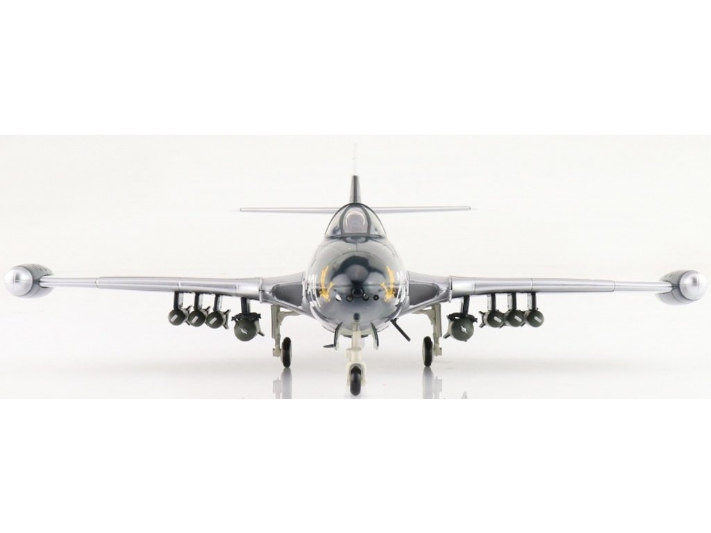 Detailně zpracovaný diecast model HobbyMaster v měřítku 1:48 věrně reprodukuje charakteristické detaily a barevné provedení stroje, což z něj dělá atraktivní a hodnotný sběratelský kousek pro nadšence vojenských modelů a letadel z období korejské války či první éry proudového letectví.