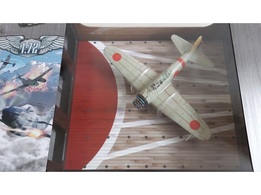 Kovový hotový model japonské stíhačky Mitsubishi A6M2 Zero-Sen/Zeke s podložkou imitace paluby letadlové lodi