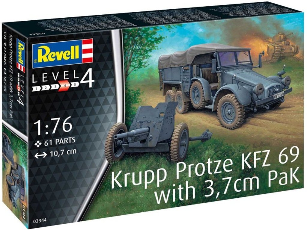 Revell - Krupp Protze KFZ 69 s 3,7cm Pak, Plastic ModelKit military 03344, 1/76