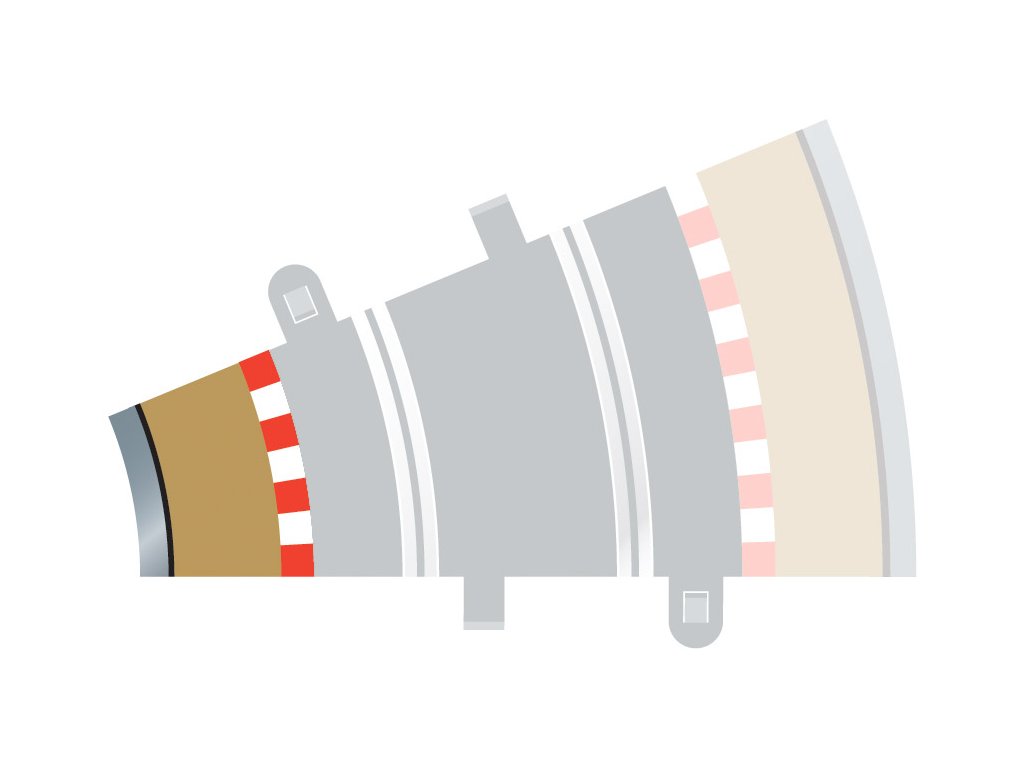 Vnitřní okraj zatáčky pro autodráhu Scalextric - rozšíření trati. Velikost: R2, 4x 22,5°.
