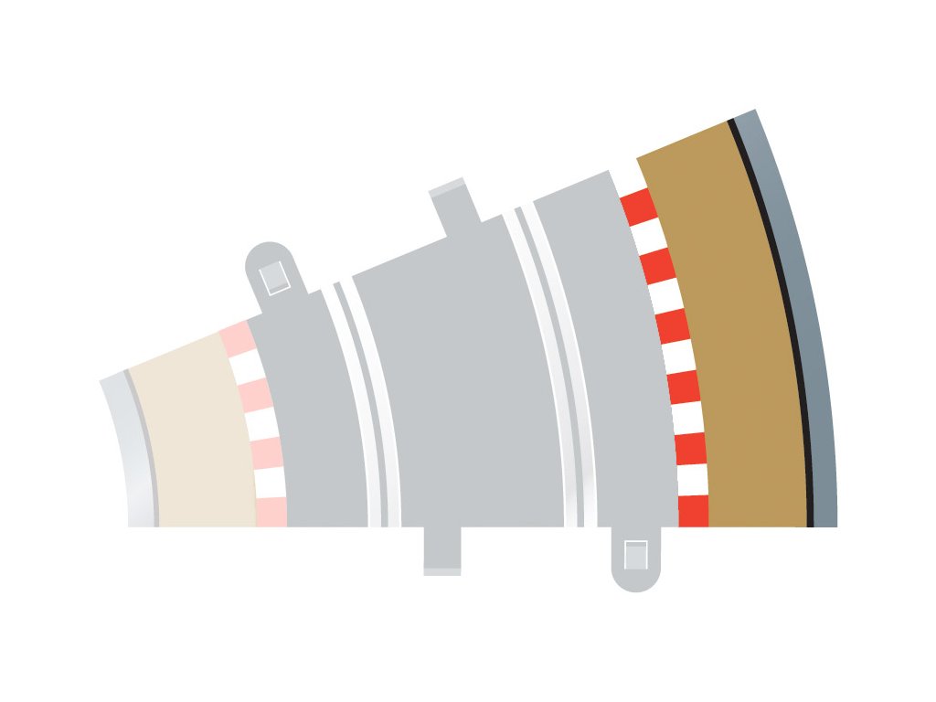 Vnější okraj zatáčky 22,5° pro autodráhu Scalextric - rozšíření trati. Velikost: 4x 22,5°.