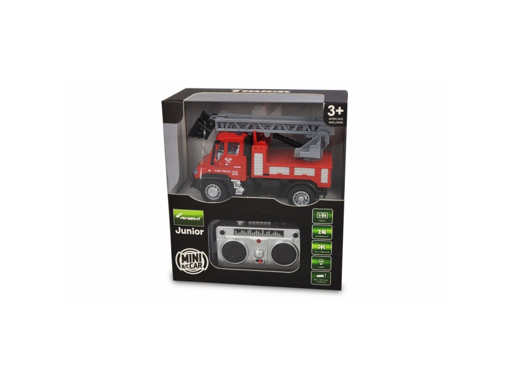 Malý, pohotový RC hasičský sbor v měřítku 1:64 s výškově nastavitelným otočným žebříkem. Ať už uvnitř nebo venku, s tímto dálkově ovládaným modelem s mini otočným žebříkem. Potěší jak nápadný vzhled v typické červené barvě signálu, tak zejména žebřík s košíkem: žebřík lze ručně nastavit na výšku a posunout o 360° – díky čemuž je herní zážitek během záchranných operací ještě mnohostrannější. Mini-truckem lze pohybovat dopředu / dozadu a doprava / doleva pomocí snadno použitelného dálkového ovládání v roztomilém kufru rádiového vzhledu. Bezpečnostní 2,4 GHz systém s dosahem až 20 metrů zajišťuje nefalšovanou herní zábavu. S vestavěnou baterií je možná doba jízdy přibližně 12-15 minut najednou. Pokud by se "energie" vyčerpala, lze baterii během několika hodin dobít pomocí kabelu USB.