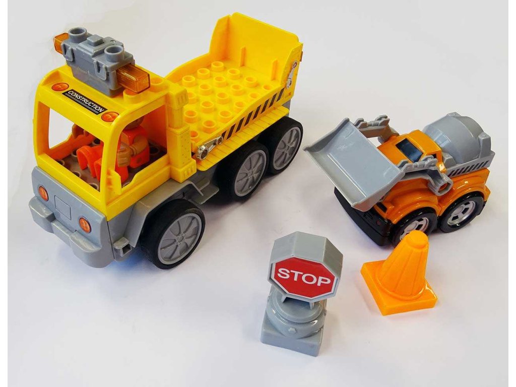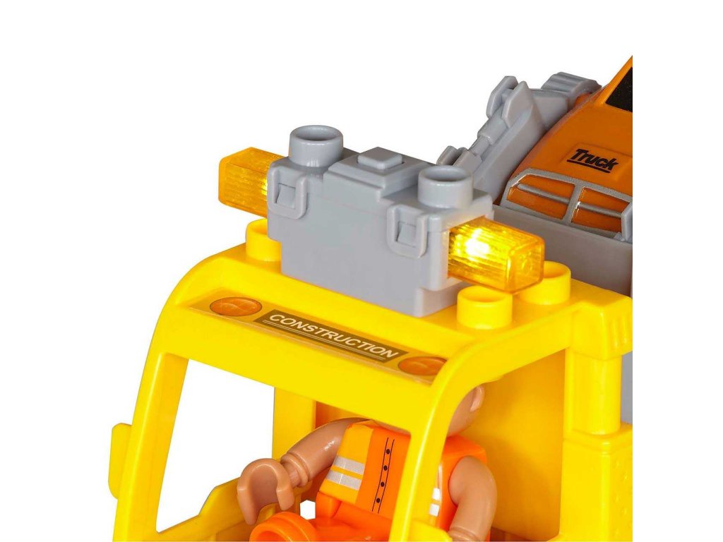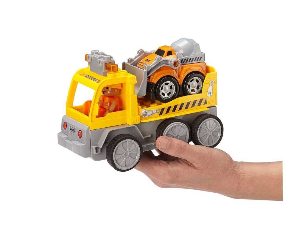 Skládací RC model autíčka na dálkové ovládání. Jednoduché složení a 2-kanálový ovladač přizpůsobený malým dětským rukám, který lze jednoduše ovládat dopředu, dozadu i do stran, jsou zárukou nekonečné zábavy. Transportér s minibagrem a blikajícími LED světly navozují atmosféru jako na skutečné stavbě.