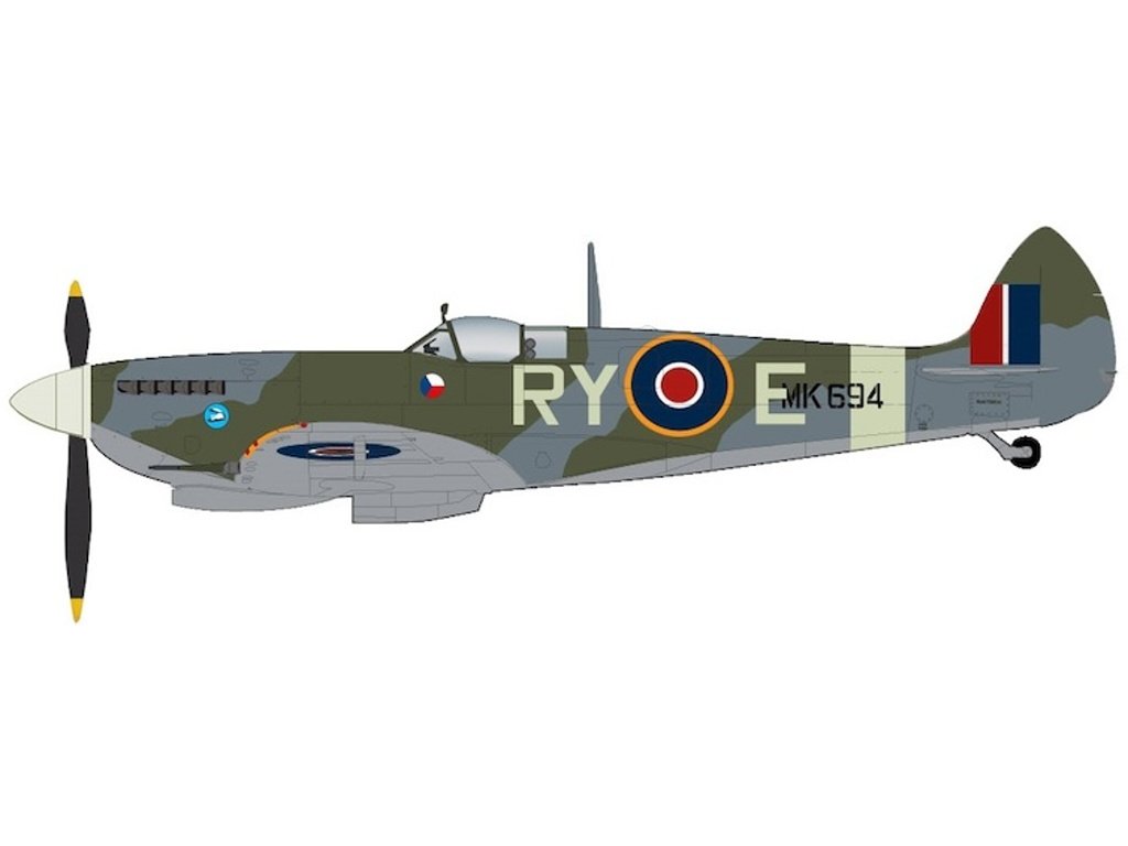 HobbyMaster - Supermarine Spitfire Mk.IXc, RAF, 313. československá stíhací peruť , F/Lt. Jaroslav Dobrovolny, říjen 1944, 1/48